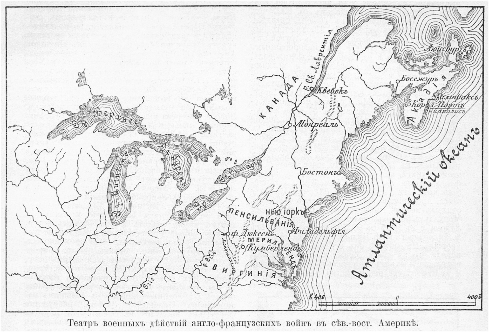 Театр военных действий англо-французских войн в северо-восточной Америке.