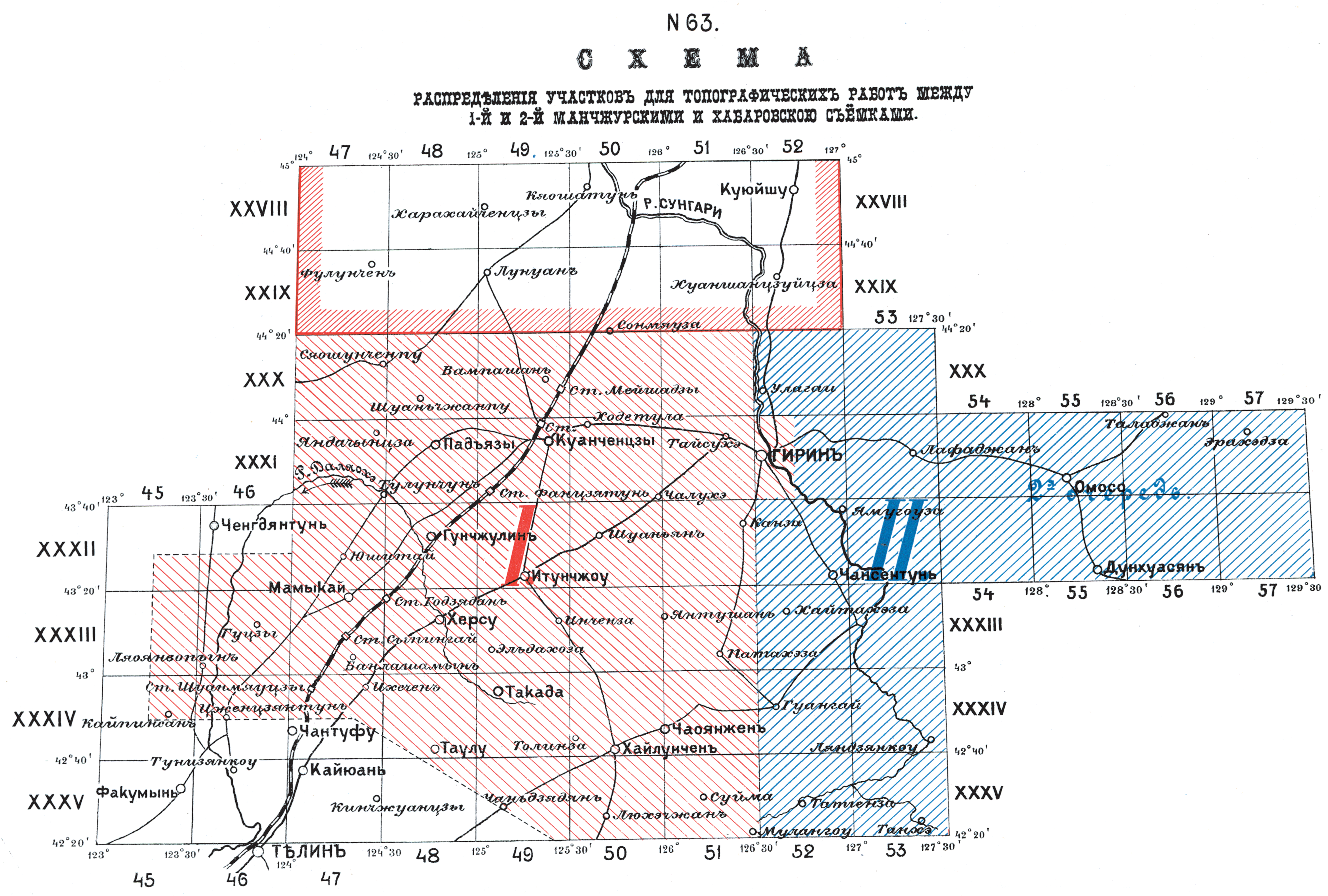 Распределение участков для топографических работ между 1 и 2 Манчжурскими и Хабаровской съемками