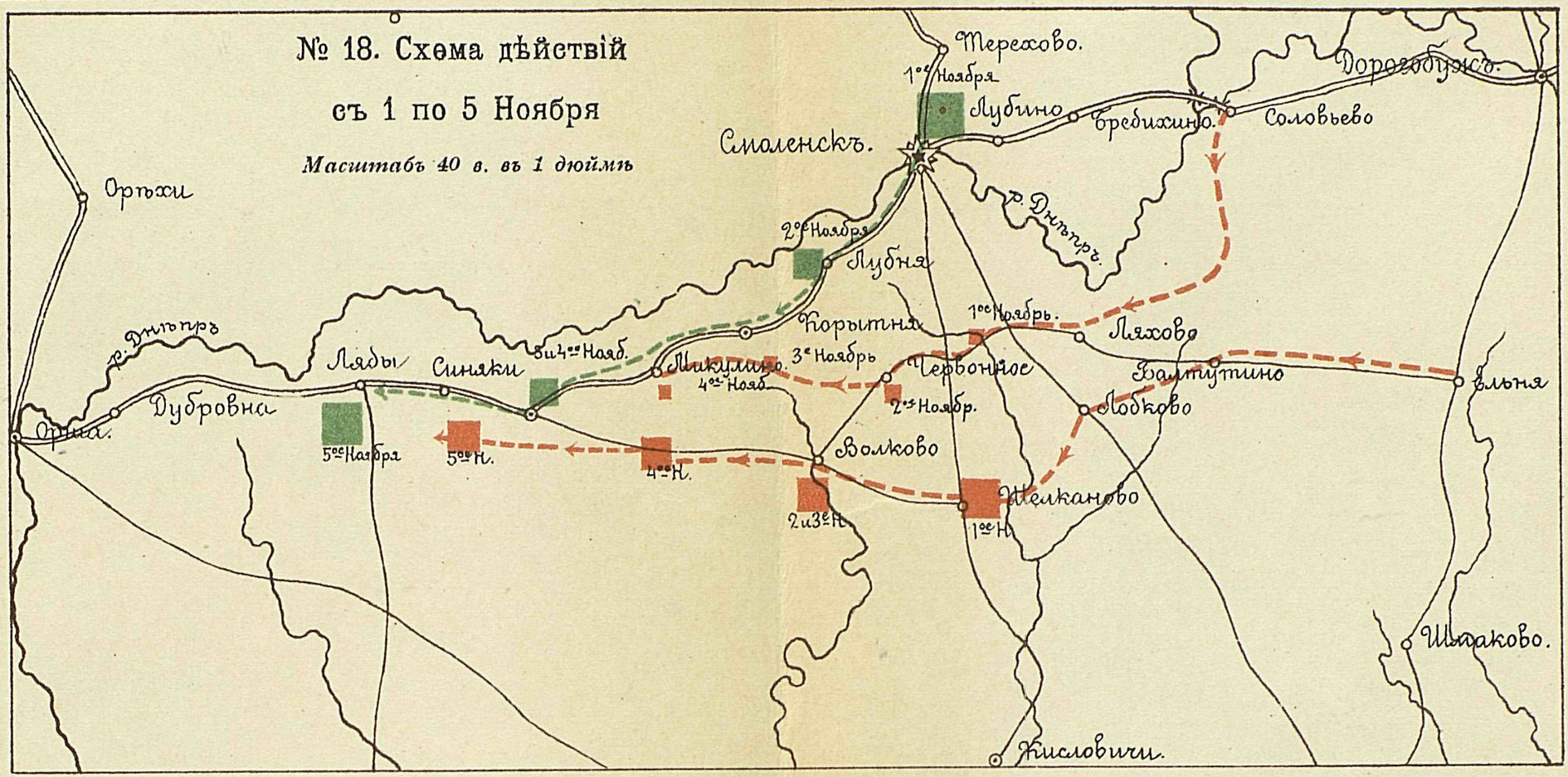 Отечественная война 1812 года. Схема действий с 1 по 5 ноября