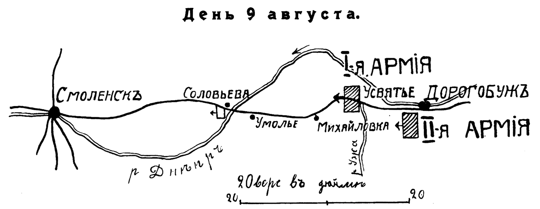 День 9 августа. Театр действий I и II армий