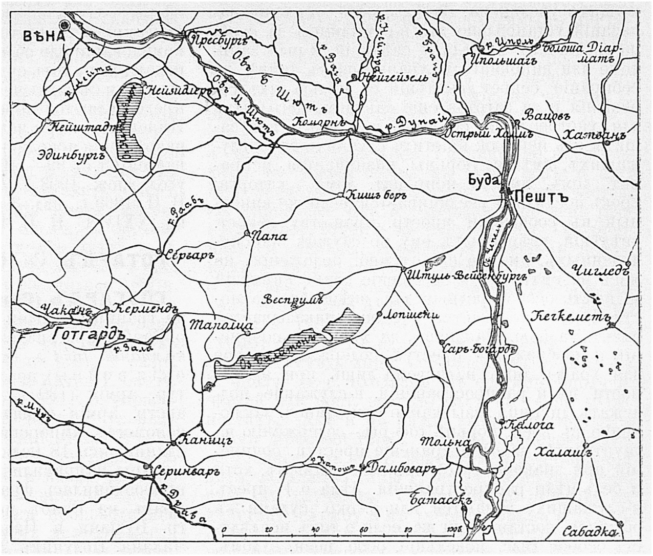 Район столкновения русской армии с венгерскими войсками 3 и 5 июля 1849 года у города Вайцена