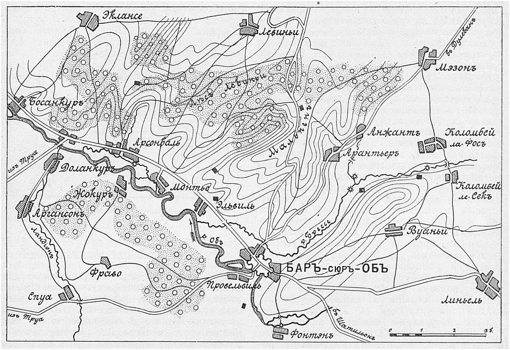 Район военных действий в январе-феврале 1814 года в окрестности города Бар-сюр-Об