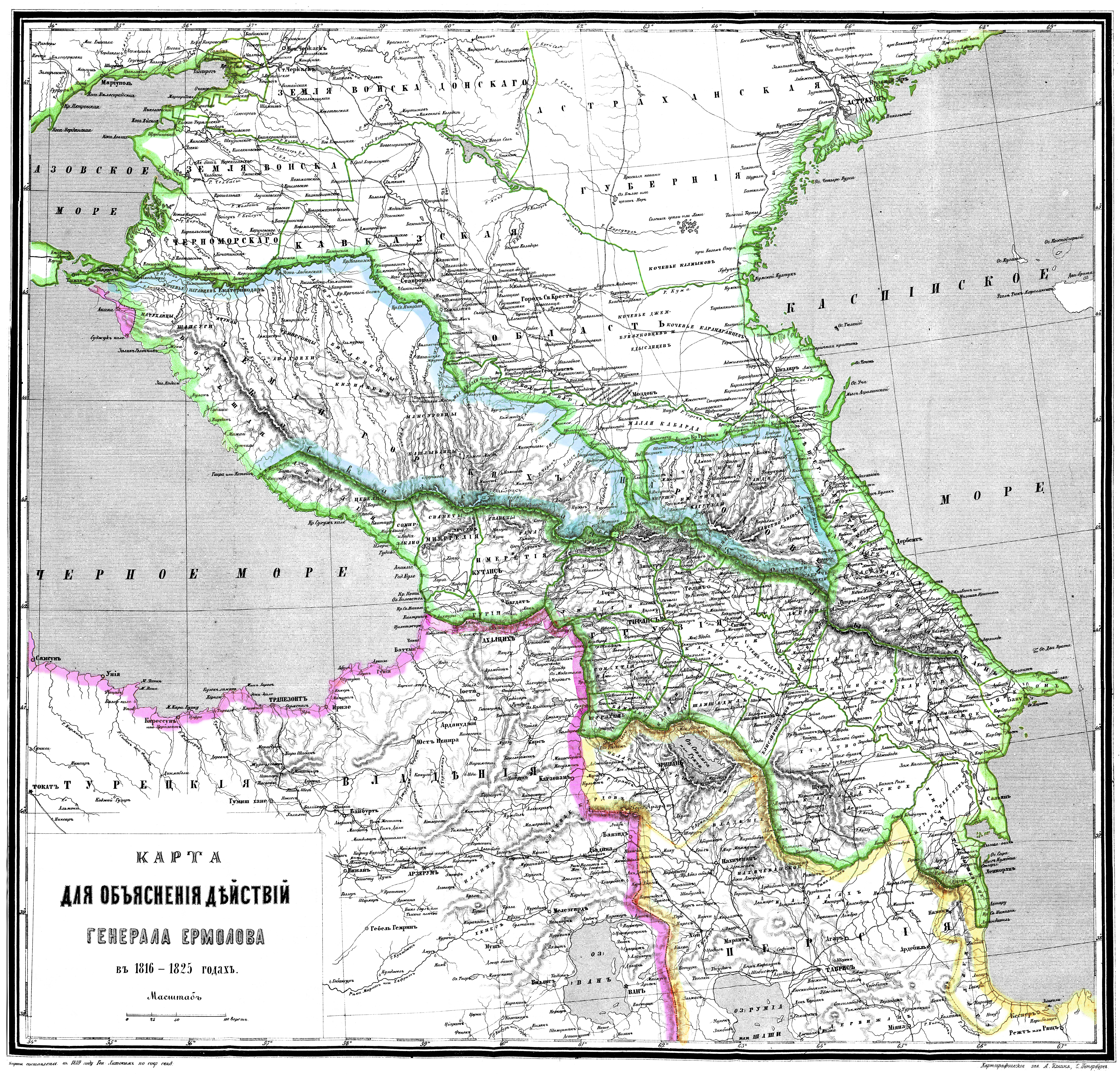 Карта военных действий в Закавказском крае с 1809 по 1817 год с границами по Гюлистанскому договору и Бухарестскому миру. 1902 год