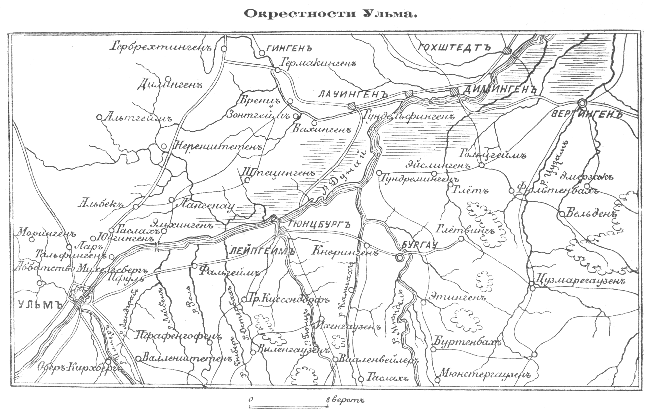 Район военных действий пятидневного боя 19-23 апреля 1809г.
