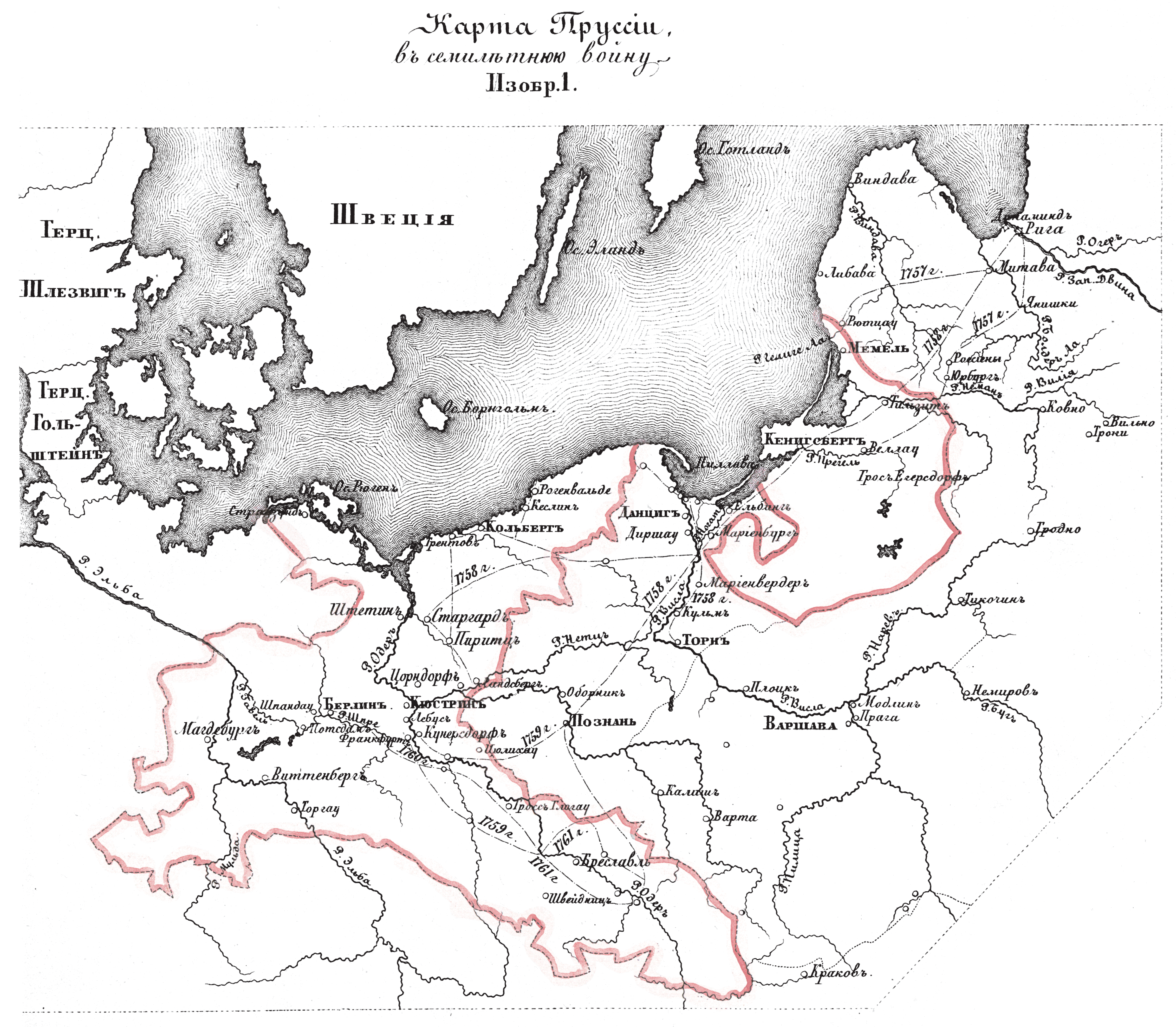 Полевые и временные укрепления. Изобр.1. Карта Пруссии в семилетнюю войну