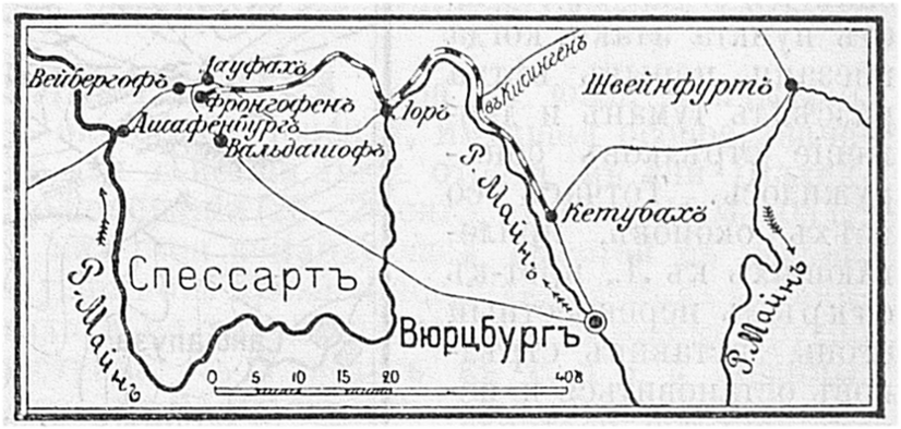 Район военных действий пятидневного боя 19-23 апреля 1809г.
