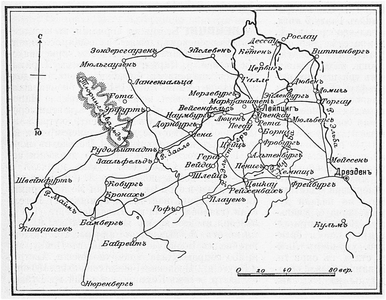 Район битвы народов 2-7 октября 1813 года в окрестностях города Лейпциг