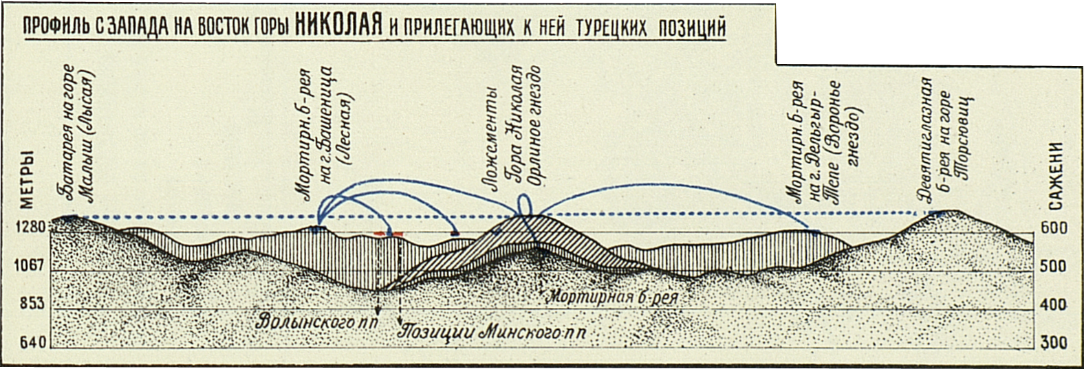 Профиль с запада на восток горы Николая и прилегающих к ней турецких позиций