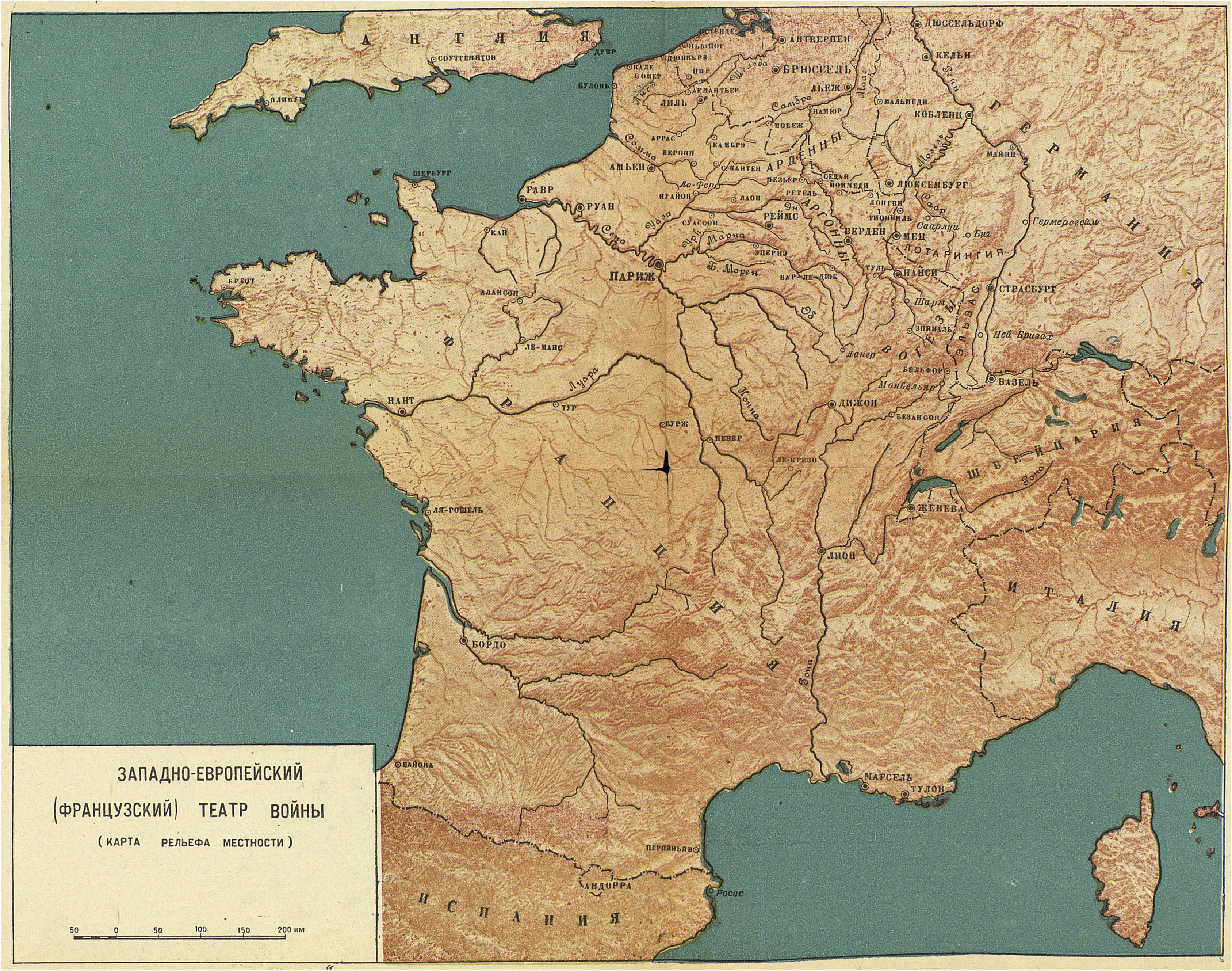 Подготовка к мировой войне 1914-1918 гг. Западно-Европейский (Французский) театр войны. (Карта рельефа местности)