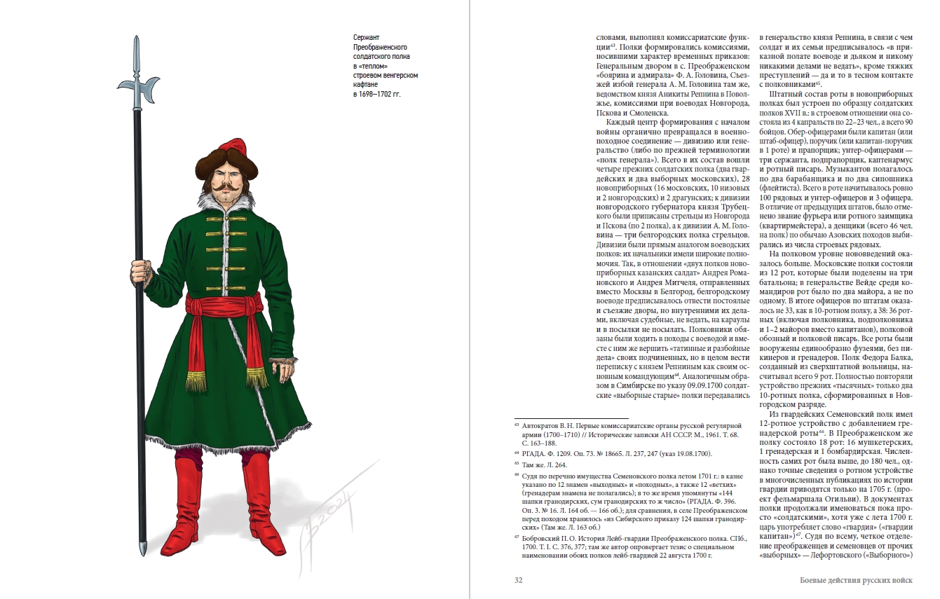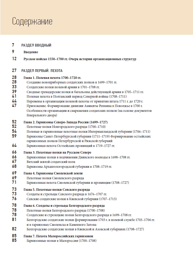 В ходе военных реформ Петра I произошел отход от милиционного устройства войска в пользу постоянной армии, которая находилась в одном и том же штатном составе в военное и мирное время и в историографии получила обозначение «регулярной». Процесс создания регулярной армии в 1700–1720 гг. до сих пор недостаточно изучен, и данная работа представляет собой серию очерков по отдельным родам войск (пехота и конница) и частям вооруженных сил, как главной или «полевой» армии, так и по всем регионам Российского царства. В основе работы — история отдельных воинских частей, в первую очередь полков, а также шквадронов и отдельных команд, что в комплексе позволяет посмотреть на военное строительство Петровской эпохи с нового ракурса. Формирование и боевой путь каждого воинского подразделения — это история России первой четверти XVIII в. «в лицах», где коллективным «лицом» оказывается полк, как отдельный сплоченный коллектив с собственным боевым путем и особой судьбой.