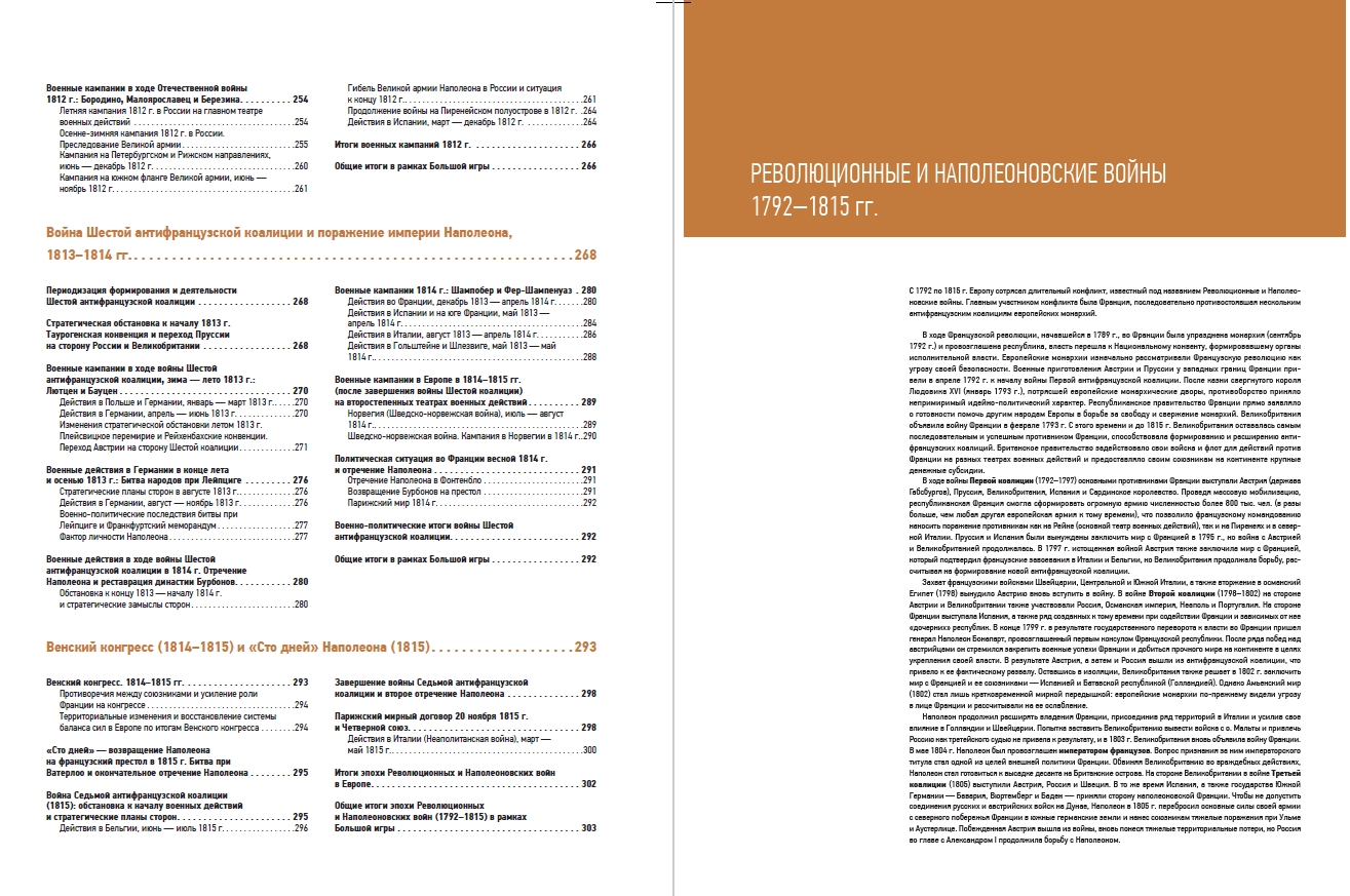 В книге собрано 137 детально проработанных карт, отражающих все военные кампании эпохи — от масштабных наполеоновских походов до малоизвестных, но важных конфликтов: «Апельсиновая война» Португалии и Испании, война Швеции и Норвегии 1814 г., Русско-турецкая война 1806–1812 гг., война Неаполя и Австрии 1815 г. и многие другие.