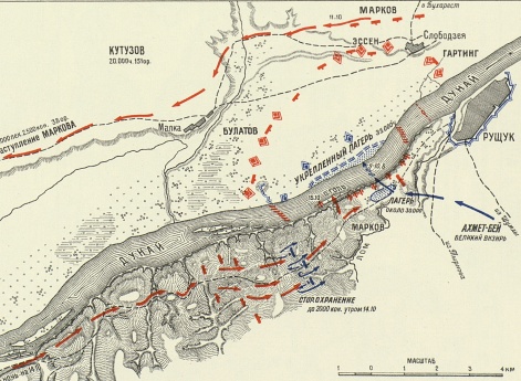 Кутузов в условиях почти двойного численного превосходства турок предпочел оборонительный план: разрушив укрепления Силистрии и Никополя, русские войска должны были отойти на левый берег Дуная в районе Рущука и Журжи и оборонять среднее течение Дуная.