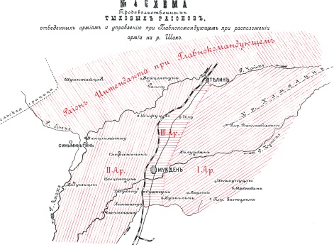 Схема ближнего тыла во время сражения на реке Шахэ