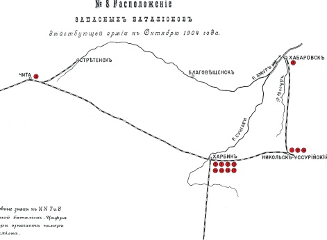 Расположение запасных батальонов действующей армии к октябрю 1904 года