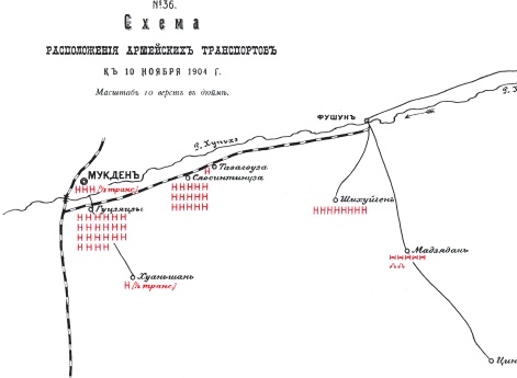 Движение транспортов в период расположения армии на реке Шахэ