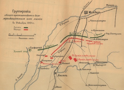 Группировка обоих противников и ихкоммуникационные линии в декабре 1904 года