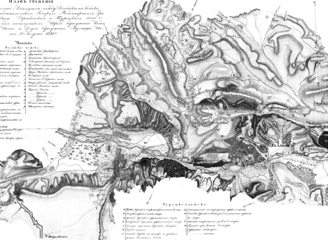 Сражение при крепости Ахалцих между Российскими войсками под предводительством Генерал Фельдмаршала Графа Паскевича Эриванского, и Турецким 30 000 Корпусом под начальством Трех бунчужного Коса-Магмет Паши и Двух бунчужного Мустафы Паши 9 августа 1828 год