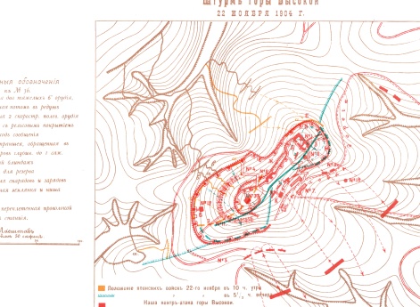Расположение японской артиллерии во время штурмов горы Высокой в ноябре 1904 года