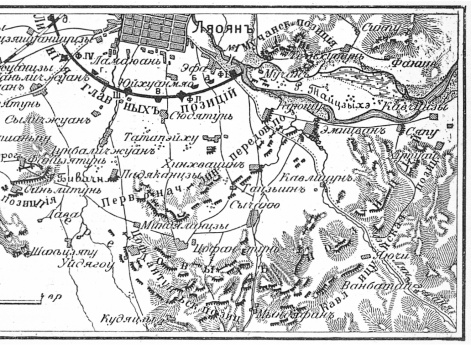 Схема отступления Южной группы к Ляояну. Положение к 3 часам дня 14 августа 1904 года