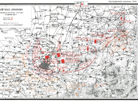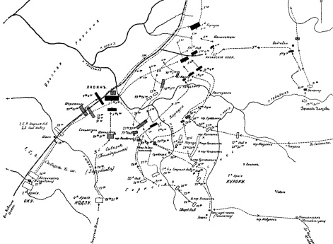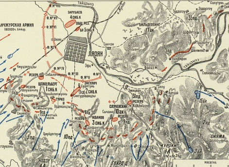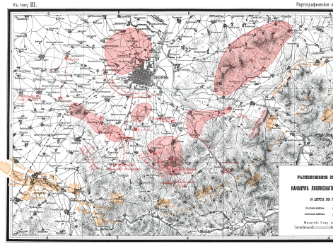 Сражение при Ляояне с 26 августа по 5 сентября 1904 года с показанием приблизительного положения обеих сторон