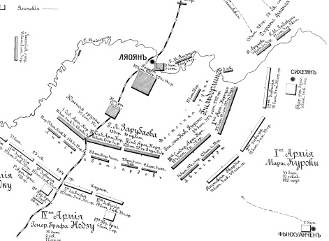 Схема расположения и сил обеих армий 10 августа 1904 года