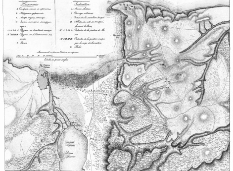 План расположения отряда Генерала Бистрома против корпуса Омера Врионе 1828 год