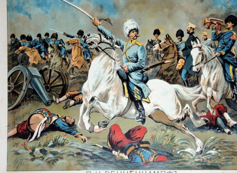 Генерал-майор П.К. Ренненкампф во время сражения. (Лубок времен русско-японской войны 1904 — 1905 гг.)