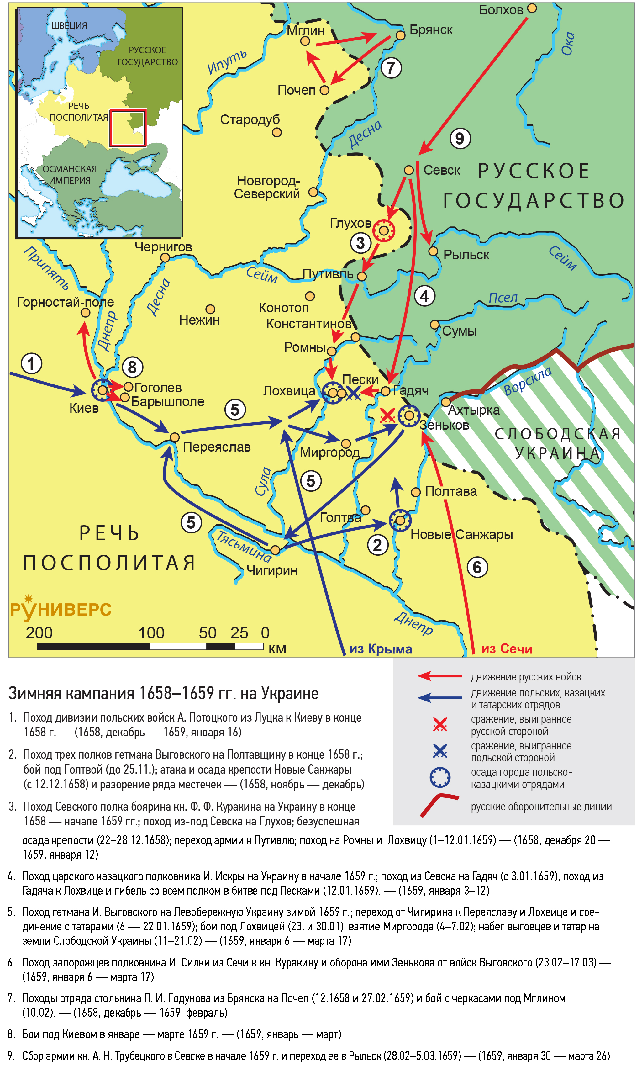 Специально для книги "Русско-польская война 1654–1667 гг." Руниверс подготовил 78 карт кампаний этой войны.