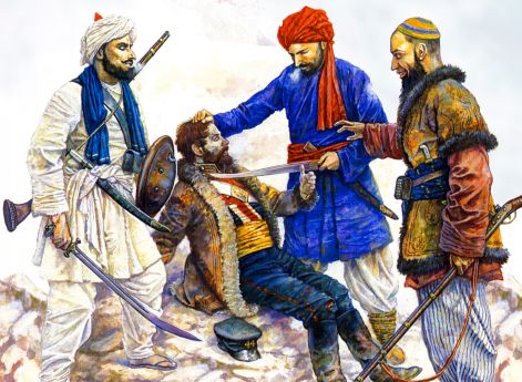 Естественно, что Наполеон никаких «индийских походов» не планировал, и вскоре все стороны об этом благополучно забыли, тем более что в Афганистане схватились насмерть местные Ланнистеры и Старки – династия Садзаев, которую представлял Шуджа-Шах Дуррани, и династия Баракзаев, чьим представителем был Дост-Мухаммед. Внимание к этой территории вернулось только в конце 1820-х годов, когда русские просто размазали Персию в войне 1826–1828 годов. Хотя все для русских начиналось очень плохо – Россия имела на границе всего 4300 войск, размазанных по региону, тогда как шах Аббас-Марза вторгся в пределы русского государства двумя колоннами, имея восьмикратное преимущество (36 тысяч солдат). При этом азербайджанские ополченцы с первыми же выстрелами сразу же перешли на сторону персов, и помогали нам только армяне, которым в случае поражения светила только жестокая смерть. У Карабага 12-тысячным персидским отрядом и татарской конницей был атакован отряд полковника Назимки, который окружили и после жесточайшего боя уничтожили полностью. Николай I, узнав об этом, писал: «Русских превосходством сил одолевали, истребляли, но в плен не брали. Сколько из бумаг понять я мог, везде в частном исполнении видна оплошность неимоверная: где предвиделись военные обстоятельства должно бы было к ним и приготовиться».