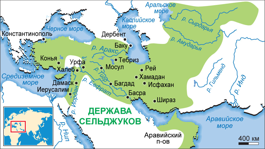 Прибытие других тюркских племен увеличило силы сельджуков, и еще до 1077 (470) г. под их властью объединилась вся западная Азия, от пределов Афганистана до границ Греческой империи в Малой Азии и фатимидского халифата в Египте.