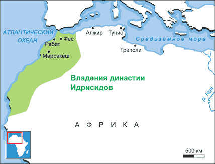 Идрисиды, арабская шиитская династия, правившая в Марокко в 789—985 гг. Основана потомком Фатимы (дочери пророка Мухаммада и Али) Идрисом I ибн Абдаллахом (789—791). При поддержке берберским племен он создал в 788 г. эмират (имамат) с центром в г. Улили (Волюбилис), при его сыне Идрисе II (803—828) столица была перенесена в Фес. Слабость центральной власти привела к распаду эмирата Идрисидов на удельные княжества при Мухаммаде аль-Мустансире (828–836). В первой половине X в. Идрисиды признали верховную власть Фатимидов. Неоднократно подвергались нападениям Испанских Омейядов. Родственные Идрисидам Хаммудиды правили в Малаге (1014/1015 – 1056).