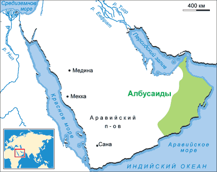 , династия султанов Омана и Занзибара. Наследовали владения династии Йарубидов. Основатель — Ахмад б. Саид (около 1754-1783) был наместником в Омане; вскоре принял титул имама ибадитов. Албусаиды проводили активную завоевательную политику, соперничали с португальцами, а позже голландцами за контроль над торговлей через Персидский залив. В XIX в. им пришлось столкнуться с ваххабитами Неджда, для борьбы с которыми Султан б. Ахмад (1792-1806) в 1798 г. заключил договор с британской Ост-Индской компанией. В Восточной Африке владения Албусаидов ограничивались Занзибаром, Пембой и Кильвой. Наиболее известным представителем династии был Саид б. Султан, которому удалось укрепить как внутриполитическую ситуацию, так и международный статус своего государства. Однако после его смерти имамат был разделен на две части: старший сын — Сувайни — наследовал Оман, а средний — Маджид — Занзибар и другие восточно-африканские владения.