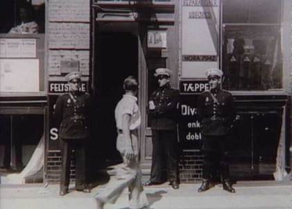 Датские полицейские возле закрытой редакции коммунистической газеты «Рабочий листок» (Arbejderbladet). 20 августа 1941 г.