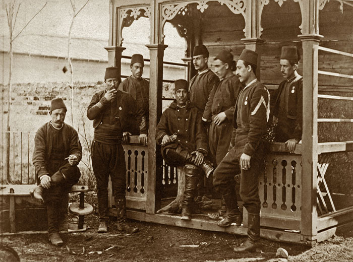 Турецкие офицеры и рядовые (низамы) в плену в Бухаресте. Ф. Душек. Февраль 1878 года