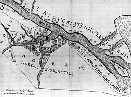 На следующий (1703) год, в апреле, от Шлюссельбурга вниз по правому берегу Невы шли русские войска под начальством фельдмаршала Шереметева; шли они лесами большими и малыми и завидели наконец при устье Охты в Неву маленький земляной городок, занимавший не более десятины земли: то были Канцы, или Ниеншанц, стороживший устье Невы. Против городка, за Охтою, посад из 400 деревянных домиков. К русскому войску приехал бомбардирский капитан Петр Михайлов и съездил на 60 лодках осмотреть Невское устье. Вечером 30 апреля началось бомбардирование, утром 1 мая Канцы сдались и переименованы в Шлотбург. Но на другой же день вечером караульные донесли, что на взморье показались неприятельские корабли. 5 мая два шведских судна, шнява и большой бот, подошли к устью Невы; бомбардирский капитан Петр Михайлов и поручик Меншиков с обоими гвардейскими полками на тридцати лодках подкрались к неприятельским судам, окружили и взяли их, несмотря на то что у шведов были пушки, а у русских их не было. Людей на обоих судах было около 80; "но, - писал Петр Апраксину, - понеже неприятели пардон зело поздно закричали, того для солдат унять трудно было, которые, ворвався, едва не всех покололи, только осталось 13 живых. Смею и то писать, что истинно с 8 лодок только в самом деле было. И сею, никогда бываемою викториею вашу милость поздравляю".