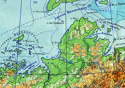 . Отсюда Челюскин повернул на юго-запад. Лишь в 1919 г., спустя 177 лет после открытия, норвежский геофизик и океанограф Харальд Свердруп, научный руководитель экспедиции Р.Амундсена на шхуне