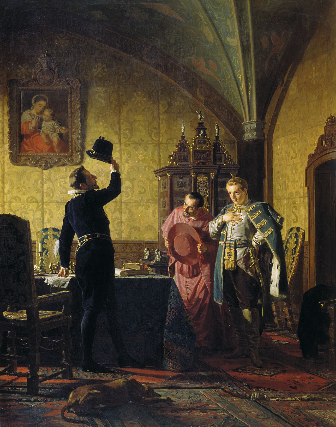 Н.Неврев. 1874 год. Присяга Лжедмитрия I польскому королю Сигизмунду III на введение в России католицизма. Саратовский государственный художественный музей им. А.Н. Радищева