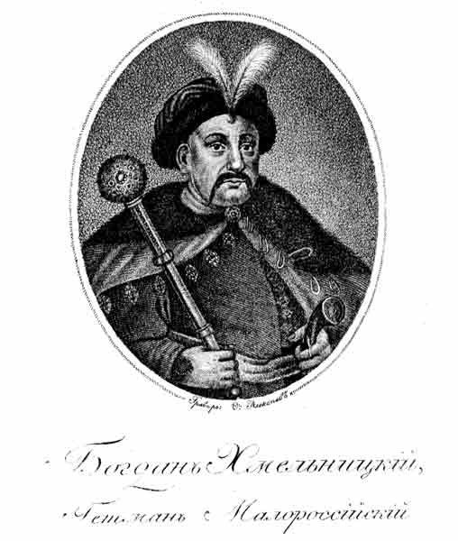 Война Украины и Речи Посполитой 1648—1654 гг.Ф. Алексеев. Первая четверть XIX в. Богдан Хмельницкий. Гравированный портрет.«6 сентября отправлены были к Богдану новые посланники: стольник Родион Стрешнев и дьяк Бредихин, объявить, что если поляки по посольству князя Репнина-Оболенского не исправятся, то государь примет козаков. Репнин возвратился и объявил о неудаче своего посольства; тогда 20 сентября послали гонца догнать Стрешнева и Бредихина на дороге и отдать им новый наказ: объявить...