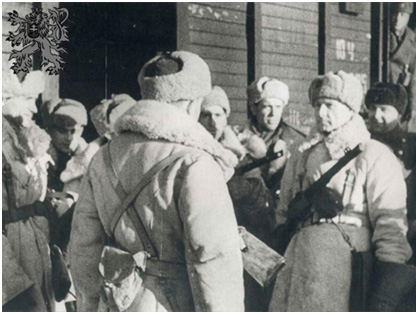 Полковник Людвик Свобода принимает доклады командиров рот перед отправкой на фронт. Январь 1943 г.