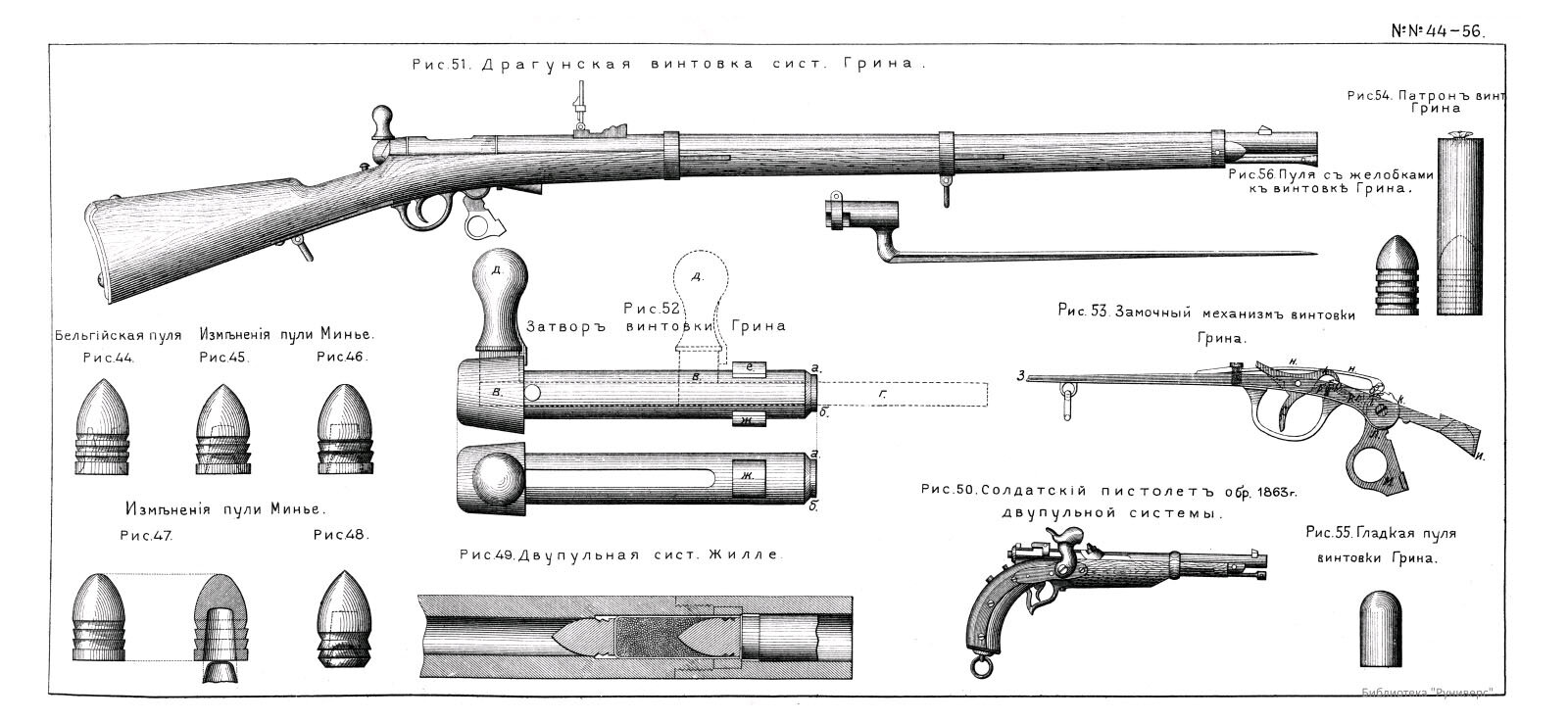 Иллюстрация из издания: Федоров В. Г. Атлас чертежей к «Вооружению русской армии за XIX столетие».—СПб.:1911. Лист с фиг. 44-56