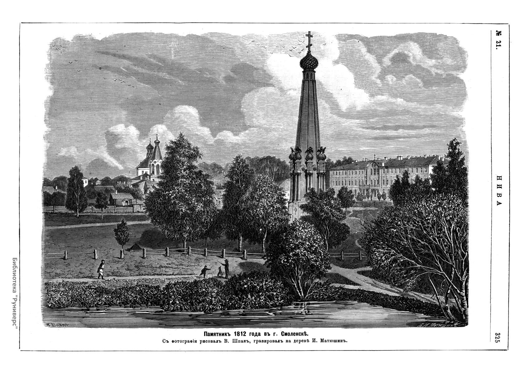 По воле государя Николая I, в 1841 году, 5-го ноября, в день, когда Смоленск был окончательно очищен от французских войск, — открыт памятник.