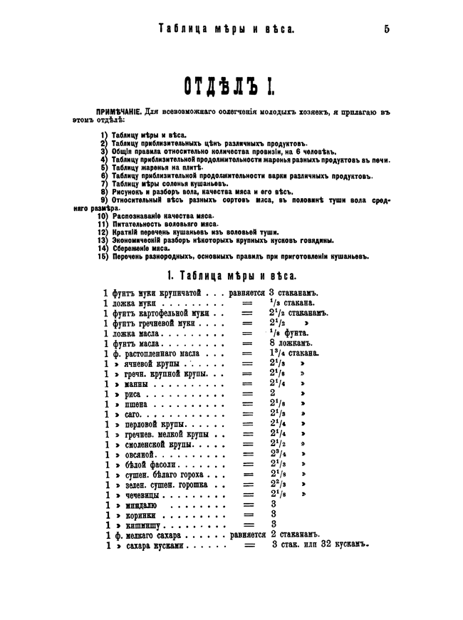 Отличительной особенностью этой книги, по сравнению с предшествующими, является точное, а не примерное, указание количества используемых ингредиентов. Руководствуясь целью уменьшить расходы в домашнем хозяйстве, автор во всех помещенных рецептах указала точную пропорцию всех ингредиентов на 6 человек.