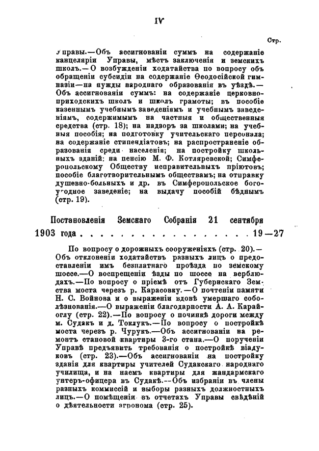 Постановления Феодосийского уездного земского собрания XXXVIII очередной сессии с 20 по 25 сентября 1903 года