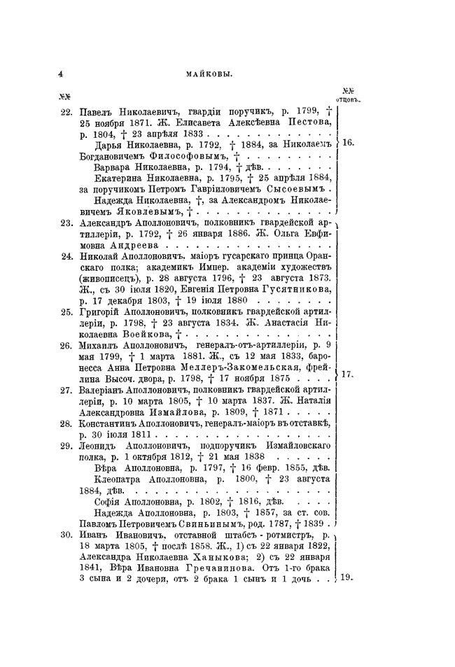 Сборник состоит из двух томов и включает в себя родословные 136 родов русского дворянства. Родословные представлены в виде поколенных росписей, включающих также супругов представителей рода и краткие биографические справки. Достаточно большое количество персон в сборнике являлись видными военными и государственными деятелями, известными представителями литературы и искусства.