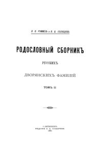 Большинство родословных, представленных в сборнике, нигде до момента выпуска не публиковались. Данные для книги были составлены на основании дел архива департамента Герольдии, а также разных исторических источников и сведений, полученных авторами непосредственно от представителей родов. Основные данные были собраны Витольдом Владиславовичем Руммелем, меньшая часть — списки семи фамилий (графы Васильевы, Галаховы, Голубцовы, Огаревы, Скобельцыны, Шиловские, Юшковы) — Владимиром Владимировичем Голубцовым.