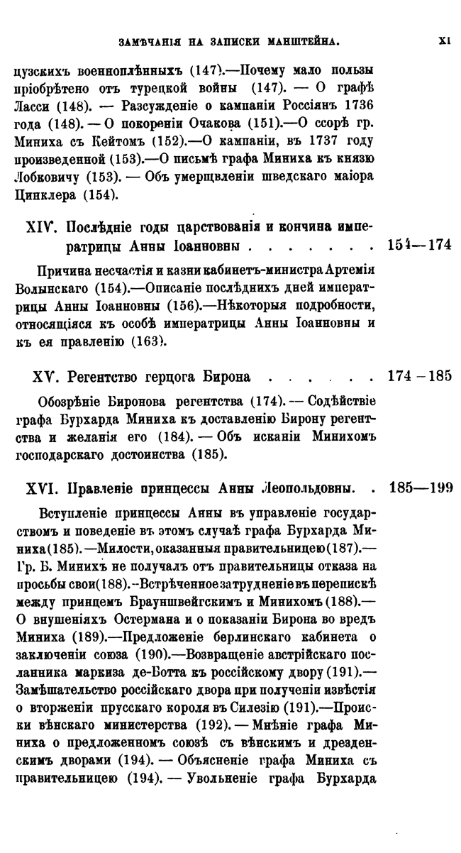 Редакция исторического журнала «Русская старина» за годы своей деятельности напечатала довольно много материалов, касающихся истории XVIII века. Благодаря этому изданию, в настоящей книге собраны труды графа Эрнста Миниха (1707-1788), сына знаменитого фельдмаршала Бурхарда Христофора Миниха. Сочинения графа содержат подробную информацию об эпохе русской истории от кончины Петра Великого до восшествия на престол Елизаветы Петровны. Будучи успешным политическим деятелем и дипломатом, Миних пользовался благосклонностью императрицы Анны Иоанновны, а после её смерти — Анны Леопольдовны. В своих заметках граф рассказывает о современных ему событиях: глазами очевидца представлены быт и нравы двора, частная жизнь Анны Иоанновны, Бирона и Анны Леопольдовны. Миних описывает дворцовые интриги, заговоры и перевороты, возвышения и падения временщиков, опалы и казни, взаимоотношения монархов и вельмож.