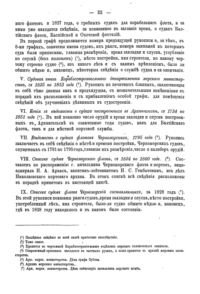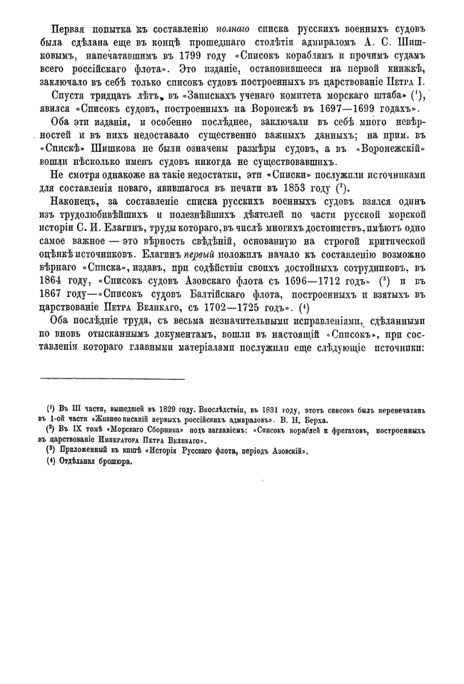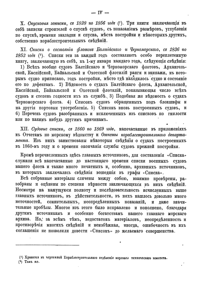 Для составления настоящего «Списка» источниками послужили все напечатанные до него списки военных судов русского флота, а также многие печатные и, особенно, архивные материалы. Все собранные данные проверены, разобраны и оценены по степени верности заключающейся в них информации.