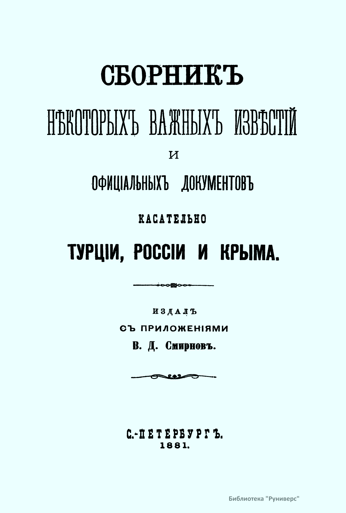 Сборник некоторых важных известий и официальных документов касательно Турции, России и Крыма