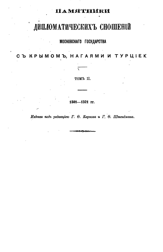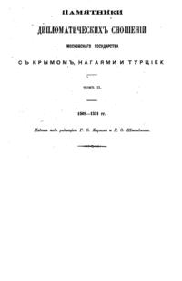 Памятники дипломатических сношений Московского государства с Крымом, Ногаями и Турцией, часть 2-ая (годы с 1508 по 1521).