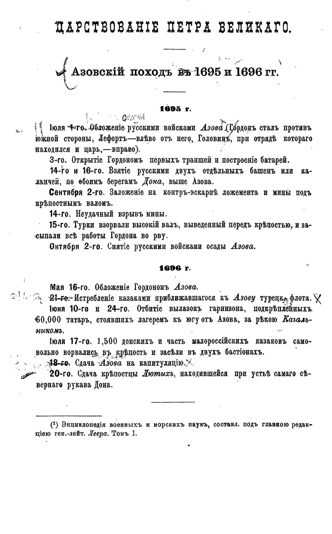 Хронология русской военной истории. Хронологический указатель войн, сражений и дел, в которых участвовали русские войска от Петра I до новейшего времени